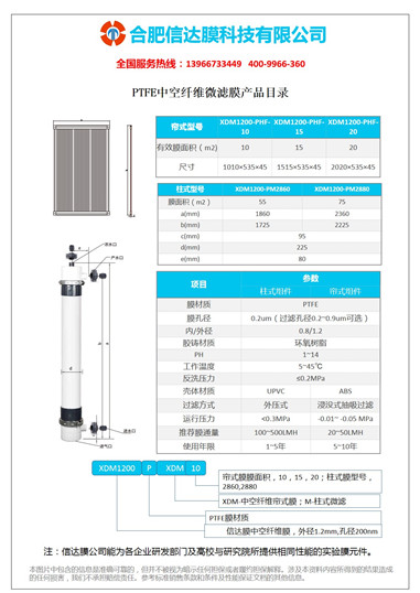 适用范围:PTFE中空纤维微滤膜元件及膜组件